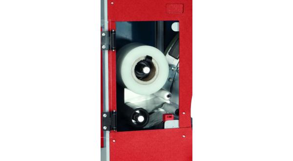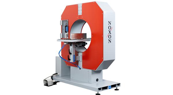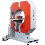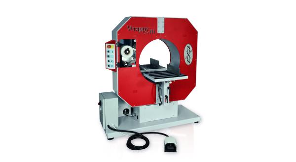 Manual rotating ring machine for spiral wrapping with stretch film.